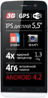 Бюджетный Explay Blaze обладатель 5.5-дюймового IPS дисплея с разрешением 960х540 пикселей, 4-ядерного процессора с тактовой частотой 1.3 ГГц, 512 МБ ОЗУ и 4 ГБ ПЗУ, слота для карт microSD объемом до 32 ГБ, 8Мп камеры, батареи емкостью 2350 мАч, а также ОС Android 4.2 "из коробки".