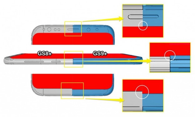 На сравнительных изображениях видно, что дизайн и габариты практически не изменились по сравнению с предшественниками. Размеры Samsung Galaxy S9 составляют 147,6 х 68,7 х 8,4 мм, он немного короче, но шире и толще Galaxy S8 с его 148,9 х 68,1 х 8 мм. Samsung Galaxy S9+ имеет габариты 157,7 х 73,8 х 8,5 мм, а Galaxy S8+ — 159,5 х 73,4 х 8,1 мм.