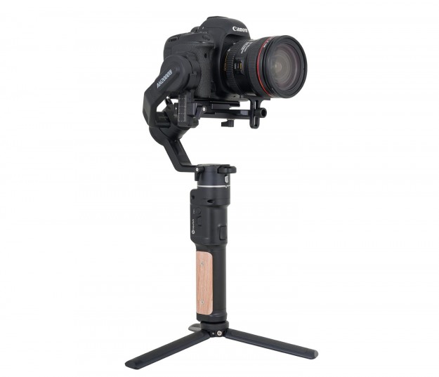 Корпус FeiyuTech AK2000С изготовлено из прочного авиационного алюминиевого сплава. На рукоятке добавлены фактурные накладки из массива груши. Благодаря такому сочетанию материалов удалось достичь веса всего 1078 грамм.