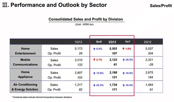 Финансовый отчет LG за 2-й квартал показывает рост прибыли и продажКомпания LG недавно опубликовала свой финансовый отчет за второй квартал этого года, который показал увеличение продаж и прибыли по сравнению с предыдущим кварталом. Общий объем продаж за этот период составил $13.58 млрд., что на 8% выше по сравнению с предыдущим кварталом и на 110,1% - по сравнению с прошлым годом. Прибыль составила $426.92 млн., что очень заметно отличается от $113.86 млн. за 1-ый квартал 2013 года. Однако она упала на $43.1 млн. по сравнению с аналогичным периодом 2012 года.
