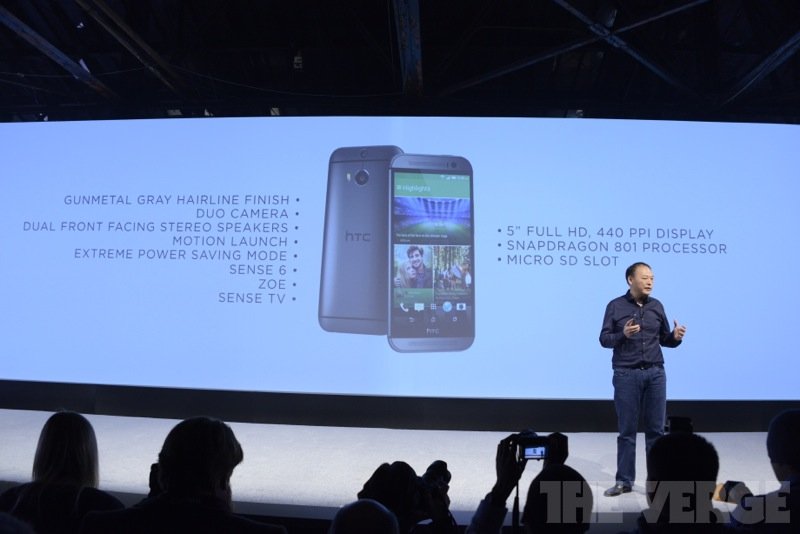 Флагман HTC One (M8) представлен официальноКомпания HTC официально представила долгожданный Android-флагман HTC One (M8). Аппарат получил от производителя 5-дюймовый дисплей с разрешением 1920х1080 точек, плотность пикселей 440ppi, 4-ядерный процессор Qualcomm Snapdragon 801 MSM8974AB с тактовой частотой 2.3 ГГц и графикой Adreno 330, 2 ГБ оперативной памяти и 16/32 ГБ внутренней, которую можно расширить с помощью карт памяти формата microSD максимальным объемом до 128 ГБ.