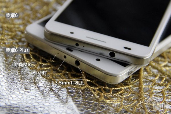 По словам производителя, два датчика захватывают больше света, в результате чего можно получить качественные фото даже при плохом освещении. Время фокусировки всего 0,1 секунды, размер точки 1,98 нм, а расстояние минимальной фокусировки — от 70 мм. Основная камера дополнена двойной светодиодной вспышкой и технологией Vision Camera, которая позволяет добиться большей глубины резкости. Из других спецификаций на борту Honor 6 Plus присутствует 5.5-дюймовый дисплей от JDI с разрешением 1920х1080 пикселей, прикрытый защитным стеклом Gorilla Glass 3, фирменный процессор Kirin 925 (4 ядра Cortex A7 с частотой 1.3 ГГЦ и 4 ядра Cortex A15 с частотой 1.8 ГГц), графика Mali-T628, сопроцессор I3, предназначенный для обработки данных с различных датчиков, 3 ГБ оперативной памяти и 16/32 ГБ встроенной, которую можно расширить с помощью карт памяти формата microSD максимальным объемом до 128 ГБ.