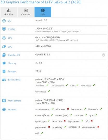 Флагман LeTV Le2 получит MediaTek Helio X25 SoC и 5.5-дюймовый экранВ базе данных популярного бенчмарка Geekbench засветился новый флагман китайской компании LeTV - смартфон Le2 на базе флагманского чипсета MediaTek Helio X25. Ядра Helio X25, напомним, сгруппированы в три кластера: дуэт Cortex-A72 с частотой до 2.5 ГГц, а также квартеты Cortex-A53 с частотой 1.4 и 2.0 ГГц. За графику отвечает ARM Mali-T880 MP4.