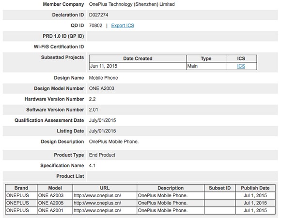 Флагман OnePlus 2 будет представлен в трех версияхНа сайте сертификационной организации Bluetooth SIG были замечены сразу три модели не анонсированного еще флагманского смартфона OnePlus 2 с индексами A2001, A2003 и A2005. Согласно Bluetooth SIG, все три устройства имеют встроенные модули Bluetooth 4.1. OnePlus 2 (A2001), вероятней всего, является базовой версией флагмана с 64-битным 8-ядерным процессором Snapdragon 810 v2.1 от Qualcomm и 3 ГБ оперативной памяти.
