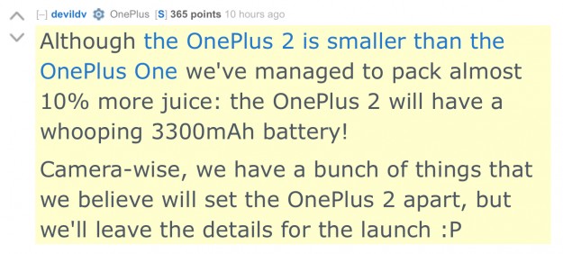 Флагман OnePlus 2 получит аккумулятор на 3300 мАчНакануне сотрудники китайской компании OnePlus провели AMA-сессию на reddit, в рамках которой рассказала новые подробности о будущем флагмане OnePlus 2.