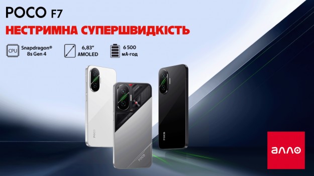 24 червня в Алло розпочато продаж флагманської моделі POCO F7, яка розширює серію POCO F7. Новинка пропонує ширшій аудиторії користувачів інновації, нестримну супершвидкість та продуктивність і неодмінно спростить повсякдення. З новим POCO F7 легко працювати, навчатися та розважатися: грати в мобільні ігри, читати, переглядати фільми та стріми, слухати музику. До 14 липня смартфон доступний з вигодою 2000 гривень в магазинах мережі, на allo.ua і в мобільному застосунку Алло.