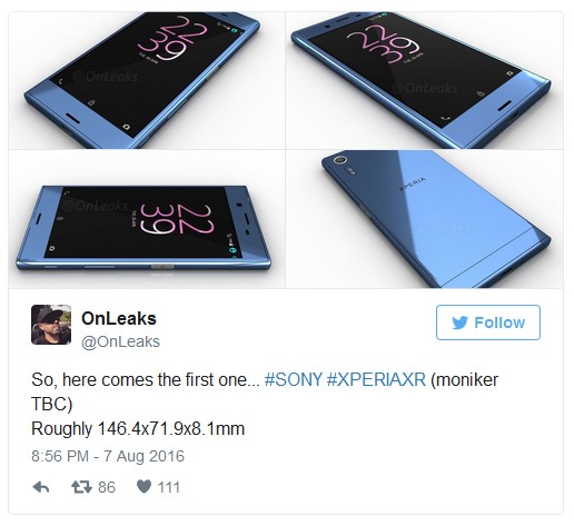 По словам @Onleaks, гаджет будет иметь габариты 146.4x71.9x8.1 мм и выйдет на рынок под коммерческим названием XperiaXR. Он получит симметричный порт USB Type-C и двухцветную вспышку.