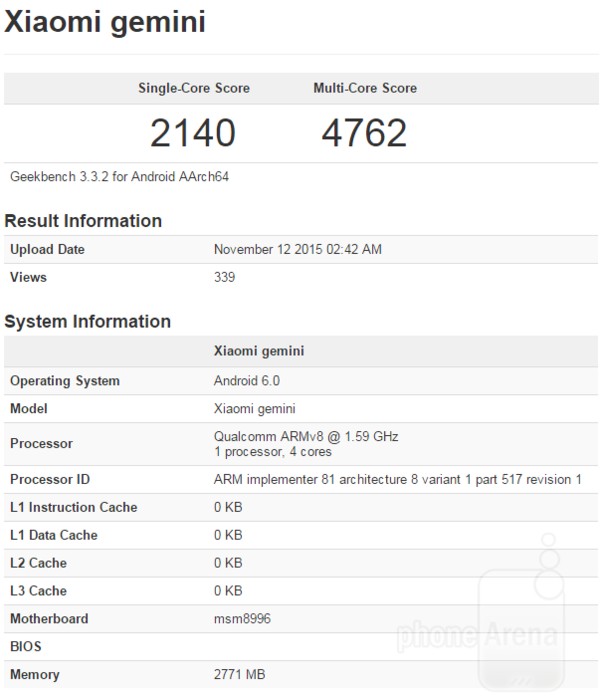 Флагман Xiaomi "Gemini" с чипсетом Snapdragon 820 замечен в GeekbenchВ базе данных бенчмарка Geekbench был замечен новый смартфон компании Xiaomi под кодовым названием "Gemini".