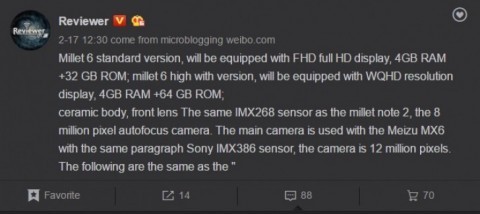 Флагман Xiaomi Mi6 получит версии с разными экранамиНа просторах популярного китайского сервиса микроблогов Weibo всплыла новая информация о готовящемся к анонсу флагмане Xiaomi Mi6, касающаяся, в частности, возможных модификаций будущей новинки. По словам инсайдеров, Xiaomi Mi6 выйдет на рынок в двух версиях, которые будут отличатся разрешением 5.2-дюймового LCD-дисплея и объемом встроенной памяти. В базовой модификации Mi6 получит Full HD экран и 32 ГБ ПЗУ, а в топовой QHD дисплей и Flash-накопитель на 64 ГБ. В остальном, как сообщается, модели будут идентичны: 4 ГБ оперативной памяти, 8Мп фронтальная камера с сенсором Sony IMX268 и 12Мп основная с сенсором Sony IMX386. Дата официального анонса Xiaomi Mi6 пока не разглашается. И на сегодняшний день уже достоверно известно, что презентации новинки в рамках выставки электроники MWC 2017 не будет.