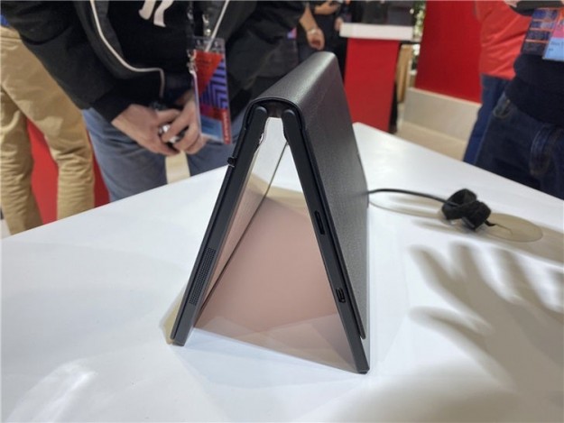 Посетители мероприятия Lenovo Tech World отмечают, что гибкий компьютер выглядит потрясающе. Он оснащён 13,3 дюймовым дисплеем, который простирается на верхнюю и нижнюю половинки корпуса.
