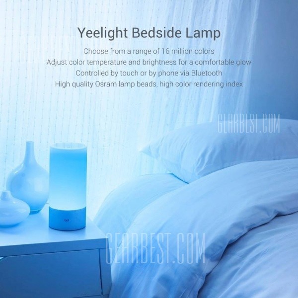 Комплект поставки этой беспроводной гарнитуры от Xiaomi включает в себя кабель для подзарядки и три комплекта амбушюр разного размера. Цена на этапе предварительного заказа в магазине www.gearbest.com всего $18.26. Cool Original Xiaomi Yeelight Indoor Night Light Dimmable Bed Lamp 16 Million RGB Touch Control Вторым интересным продуктом от Xiaomi, о котором также хотелось бы рассказать детально стал Yeelight Indoor Night Light Dimmable Bed Lamp.