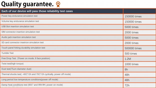 Климатические тесты, к примеру, необходимы, чтобы воссоздать условия эксплуатации смартфона в любом уголке земного шара. Они позволяют оценить, насколько устойчиво покрытие устройства к выцветанию, высокой влажности и тд. Смартфон испытывают также в пыльной камере, где в него вдуваются частички пыли, чтобы затем знать, какие отверстия трубки дали слабину. Еще одним немаловажным тестом, является испытания смартфона на прочность механическими ударами и химическими жидкостями.