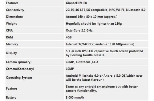 Gionee представит на MWC 2015 флагман Elife E8 с 4 ГБ ОЗУНа выставку электроники Mobile World Congress 2015 китайская компания Gionee, согласно последним слухам, привезет свой новый мощный флагманский смартфон Elife E8.