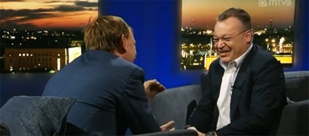 Глава Nokia со смехом отшвырнул iPhone во время телепередачи (видео)Веселая сценка с участием шефа Nokia Стивена Элопа произошла на днях во время одной из телепередач. Во время диалога с ведущим Элопу било задано несколько вопросов касательно анонса нового флагмана Lumia 928. И, несмотря на тот факт, что во время передачи ведущий несколько раз возвращался к своим вопросам, все же господин Элоп умело спрыгивал с них, переводя в конечном итоге тему в сторону смартфона Nokia Lumia 620.