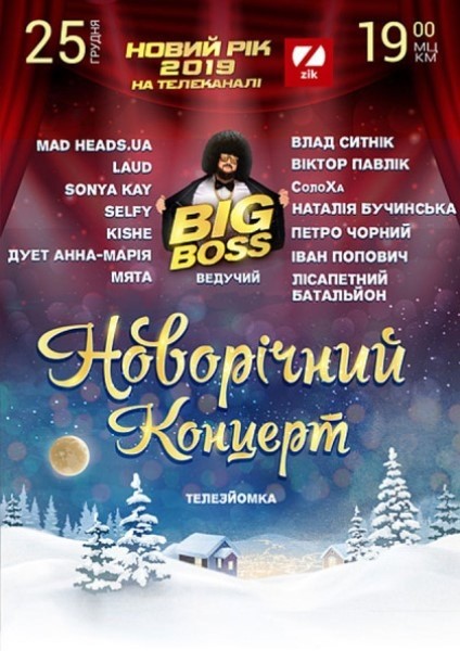 Зрителей ожидает яркие спецэффекты, использование голограммы, а также известные гости, которые придут поздравить свою подругу. BIG BOSS шоу в столицеНа сцене «Октябрьского» состоится запись новогоднего шоу от BIG BOSS. Пропускать такое событие не стоит ведь именно здесь соберутся известные персоны из всех сфер: политика, спорт, культура, эстрада. Фронтмен любимой группы собирается повеселить всех от души. Гостей события ожидают яркие шутки, сюрпризы, а также много музыки. Это настоящая репетиция Нового года, не упусти шанса получить отличное настроение.