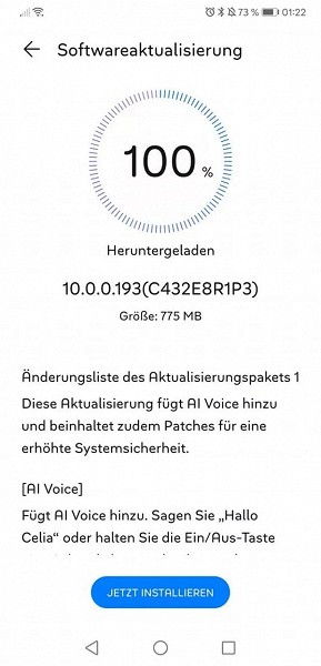 Обновление EMUI под номером 10.0.0.193 прилетает «по воздуху», имеет размер 775 МБ и состоит из двух пакетов. В первом пакете на смартфон прибывает новый фирменный голосовой помощник Celia Voice и новые приложения: Petal Search, Reader, Petal Maps, GameCenter, Member Center и Link Now. Также первый пакет устанавливает апдейт безопасности Android за апрель 2021 года.