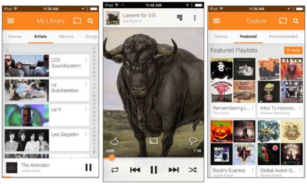 Google анонсировала приложение Google Play Music для платформы iOSНа днях компания Google анонсировала возможность запуска музыкального сервиса Google Play Music для устройств на платформе iOS. Сообщается, что пользователь может бесплатно загрузить в облако до 20 тыс. треков включительно. Поскольку вся музыка храниться на сервере, можно не беспокоиться об объеме дискового пространства.