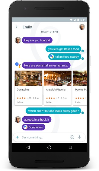 Google Home — это активируемое голосом устройство, благодаря которому Google Assistant будет доступен в любой комнате дома. Оно поможет наслаждаться отдыхом, выполнять повседневные задачи и получать от Google ответы — все это в режиме диалога. С помощью простой голосовой команды можно будет попросить Google Home включить музыку, установить таймер духовки, проверить время вылета или включить свет. Гаджет выйдет чуть позже в этом году. Allo — это новое приложение-мессенджер со встроенным Assistant. Взаимодействовать с ним можно прямо в чате — собственном или групповом. Виртуальный ассистент позволяет уточнить, что запланировано на день. Кроме того, у него можно попросить показать фотографии, перечислить рестораны поблизости и многое другое.