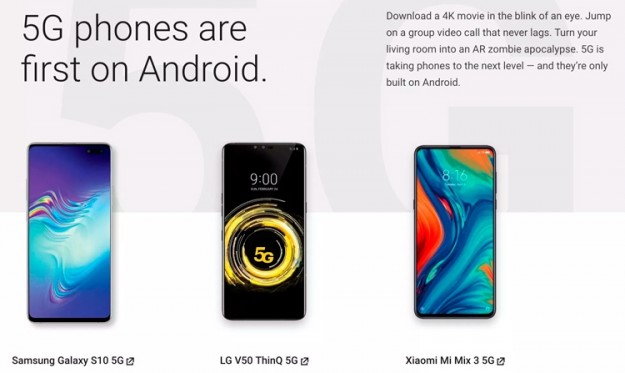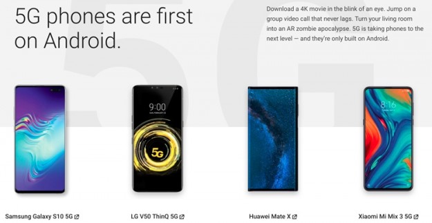 Huawei Mate X был представлен на сайте Android.com в разделе, посвящённом первым 5G-аппаратам. Теперь вместо четырёх в нём остались три устройства — Samsung Galaxy S10 5G, LG V50 ThinQ 5G и Xiaomi Mi Mix 3 5G.
