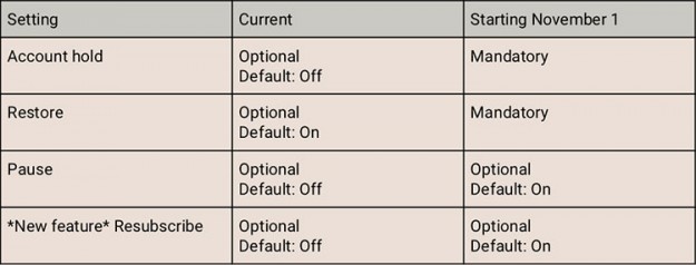 Также, начиная с 1 ноября, все подписки в рамках Google Play будут в обязательном порядке поддерживать приостановку в случае неудачи со списанием средств с подключённого счёта. Обязательно будет поддерживаться возобновление подписки в случае, если пользователь её прервал до завершения оплаченного периода. Также Google предложит возможность приостанавливать подписки на 3 месяца и возобновлять их в упрощённом режиме после отказа. Джерело: 3DNews.ru Обговорення новиниКоментариев пока никто не оставил. Станьте первым! Попередні новини