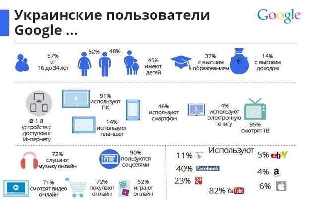 Google представляет портрет украинского пользователя ИнтернетаСегодня мы представляем результаты исследования потребительского поведения, проведенного компанией TNS Infatest по заказу Google. По данным исследования, 56% опрошенных являются регулярными пользователями Интернета. При этом среди украинцев в возрастной группе от 16 до 24 лет этот показатель составляет 96%.