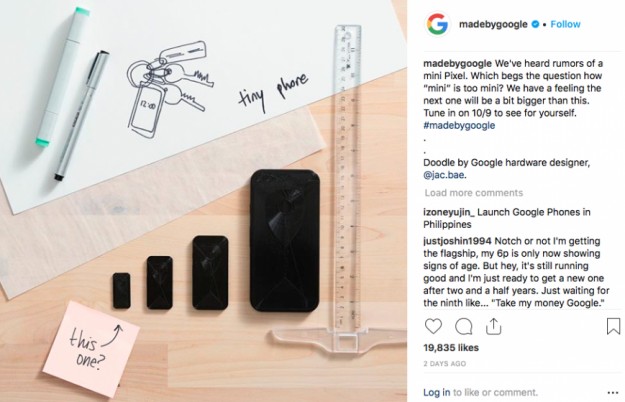 Google выпустит рекордно компактный флагманский смартфонНа днях компания Google пошутила в своём аккаунте Instagram о миниатюрном смартфоне Pixel mini, выложив рендер с подписью «Мы слышали слухи о мини-Pixel. Что подводит нас к вопросу, насколько «мини» станет уже слишком мини? Думается, следующий будет несколько меньше, чем это <как>. Присоединяйтесь к нам 9 октября, чтобы увидеть самим». Теперь появилось подтверждение того, что миниатюрный Pixel тестируется Google.