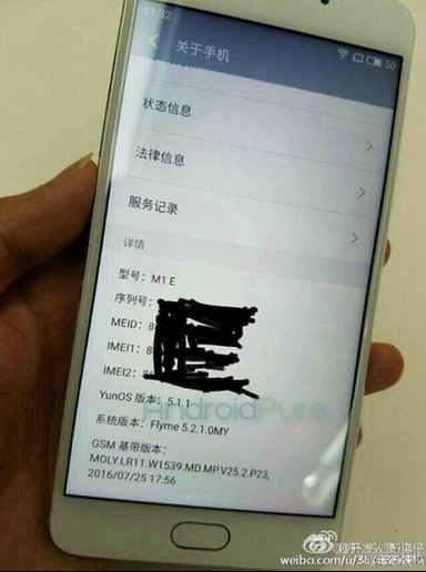 Работает Meizu M1E под управлением Flyme OS 5.2.1, созданной на базе операционной системы Android 5.1.1 Lollipop. Исходя из снимков, смартфон получит сканер отпечатков mTouch 2.1, встроенный в механическую кнопку "Home".