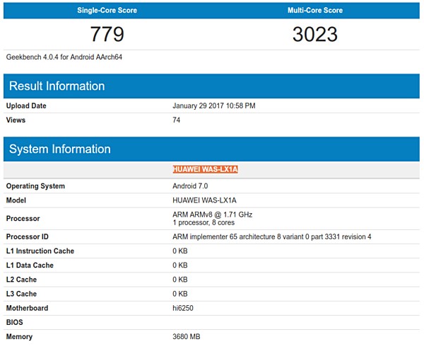 Готовится к анонсу Lite-версия флагмана Huawei P10Тестирование производительности в бенчмарке Geekbench прошел смартфон Huawei WAS-LX1A - предполагаемая Lite-версия не представленного еще официально флагмана P10.