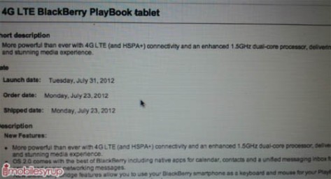 Готовится к анонсу модификация планшета PlayBook с LTEОжидается, что новинка будет представлена уже через пару дней – 31 июля.