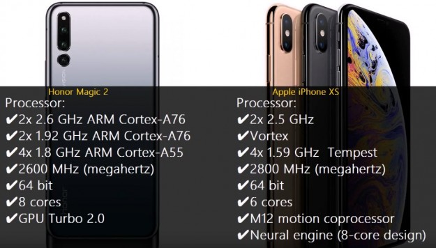 Honor Magic 2 обладает типичными характеристиками для флагманов от Huawei, при этом выпускается в четырёх версиях, где главное отличие объём памяти смартфона. Трубка обладает маленькими габаритами 158х75х8.4 мм., и весит всего 206 грамм, так что не составит труда носить его в маленькой сумочке, или тесном кармане. Смартфон имеет двойной слот для сим-карт, но увы, придется выбрать между еще одной сим-картой, или картой памяти. Но это не так плохо, так как флагман имеет большой запас памяти. Так же в распоряжении лишь три расцветки: синяя, серая и нежно-красный цвет. Этот объем цветов, не велик, но разве берут смартфон по цвету? У того же Apple iPhone XS также только три варианта тыльной крышки, в чем можно убедиться на https://yabloki.ua/rus/iphone/iphone-xs.html. Покупателю в модели iPhone XS доступны черный, серебристый и золотой цвет. Дисплей у Honor Magic 2 6.40 дюйма, AMOLED, мультитач, разрешение экрана 2440х1090, а это, для справки, меньше чем у упомянутого выше айфона 2018 года выпуска.