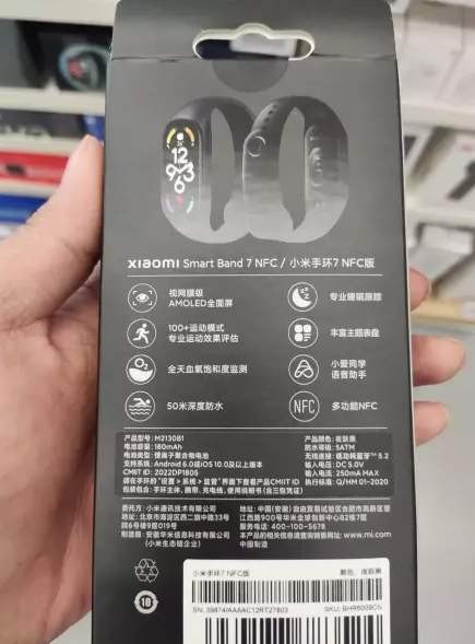 Xiaomi будет предлагать обычную версию Band 7 и вариант с поддержкой NFC. Изображения показывают, что номер модели — M23130B1, и она совместима с устройствами, работающими под управлением Android 6.0 или выше и iOS 10.0 или выше.
