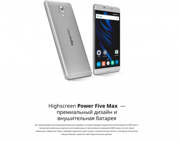 Highscreen Power Five Max – металлический флагман с огромной батареей 5000 мАчНовинка является флагманской моделью серии Power, которую отличают батареи повышенной емкости. В Five Max установлен аккумулятор емкостью 5000 мАч, который способен обеспечить несколько дней активного использования смартфона. Закругленный 5.5 Super AMOLED экран охватывает 100% цветовой гаммы NTSC, а механическая кнопка с сверхбыстрым сенсором отпечатка пальцев поможет защитить данные. Также стоит отметить ИК-порт и специальное приложение для управления домашней техникой.