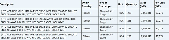 HTC готовит к анонсу смартфон One (E8 Eye)В базе данных индийского логистического веб-сайта Zauba был замечен не представленный еще официально смартфон HTC One (E8 Eye). Новинка, очевидно, в самое ближайшее время пополнит ряды линейки устройств "Eye", в которую уже входят представленные на прошлой неделе модели Desire Eye и One (M8 Eye). Фрагмент документа информирует о том, что 1152 тестовых экземпляра девайса прибыли из Тайваня в Индию на тестирование. Стоимость одного смартфона составляет порядка $445.