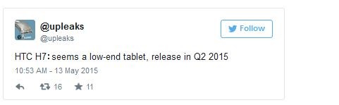 HTC представит бюджетный Android-планшет H7Китайский «мастер утечек» UpLeaks на своей странице в сервисе микроблогов Twitter сообщил о подготовке тайваньской компанией HTC к анонсу нового бюджетного планшета под кодовым названием H7.