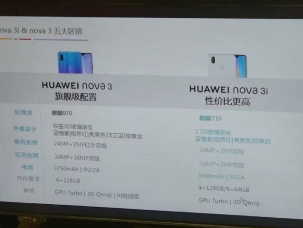 Беглого сравнения спецификаций достаточно, чтобы понять, что Nova 3i — это упрощенный вариант модели Nova 3. Да, смартфон получит тот же экран диагональю 6,3 дюйма разрешением Full HD+, но емкость аккумуляторной батареи оказалась меньше, а помимо того будет версия с 4 ГБ оперативной и 64 ГБ флэш-памяти, в то время как единственный вариант Nova 3 — 6 ГБ ОЗУ и 128 ГБ встроенной памяти.