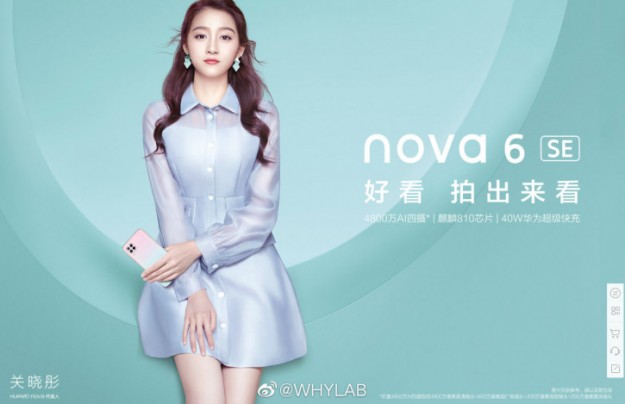 Девайс является лайт-версией флагманского Nova 6, предлагая средний по производительности чипсет Kirin 810 в связке с 8/128 ГБ памяти. Quad-камера включает 48-Мп основной, 8-Мп широкоугольный сенсор, а также макро и портретный модули по 2-Мп. Разрешение фронтальной камеры, врезанной в левый верхний угол дисплея составляет 16 Мп. Аккумулятор ёмкостью 4200 мАч поддерживает быструю 40-Вт зарядку. Стоимость Huawei Nova 6 SE в Китае составляет 2199 юаней ($329).