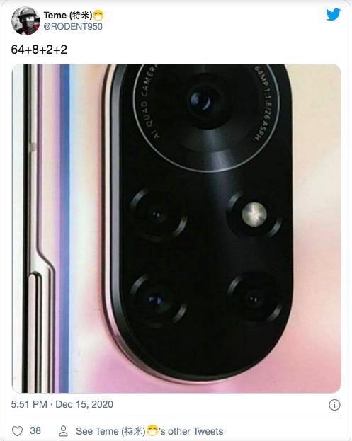 Huawei Nova 8 получит 120-Гц экран и необычно оформленную тыльную камеру