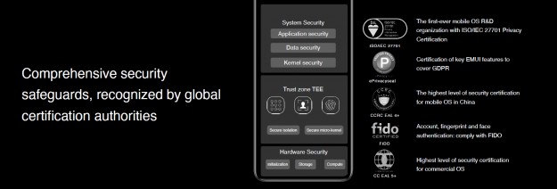 Конфиденциальность данных Huawei остается верной обязательству защищать конфиденциальность данных пользователей, продолжая внедрять инновации. Сейчас EMUI уже поддерживает функцию безопасного хранения паролей Password Safe и другие ориентированные на пользователей опции приватности. Комплексная защита дополнена микроядром TEE OS, сертифицированным по стандарту CC EAL5+. EMUI 11 также поддерживает функцию зашифрованных записей, защищающую персональные записи с помощью пароля или биометрической проверки. Конфиденциальные данные о фотографиях, такие как локация, время и модель гаджета, можно легко удалить перед распространением, чтобы предотвратить использование частной информации злоумышленниками.