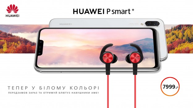 Самый продаваемый в Украине смартфон — недавно представленный Huawei P smart+ — с сегодняшнего дня можно предзаказать в новом белом цвете. Все покупатели, оформившие предзаказ, получат в подарок Bluetooth-наушники Huawei AM61 при покупке смартфона.
