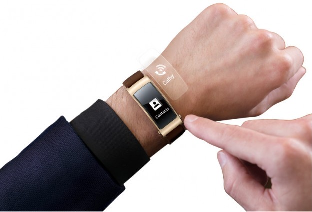 TalkBand B3 во всех трех модификациях оснащен слегка изогнутым сенcорным PMOLED дисплеем с разрешением 128х80 пикселей, прикрытым сверху защитным стеклом Gorilla Glass с олеофобным покрытием, двумя микрофонами и аккумулятором на 91 мАч, обеспечивающим до 6 часов работы устройства в режиме разговора.