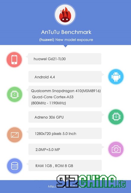 Huawei представит смартфон с 64-битным Qualcomm Snapdragon 410Следом за новинкой южнокорейской Samsung с индексом SM-G510F в Сети «засветился» еще один смартфон с 64-битным мобильным чипсетом Snapdragon 410 на борту — Huawei G621.