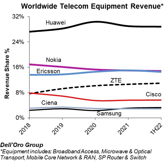 Huawei зберігає лідируючі позиції на світовому ринку постачальників телекомунікаційного обладнання за підсумками першого півріччя 2022 року