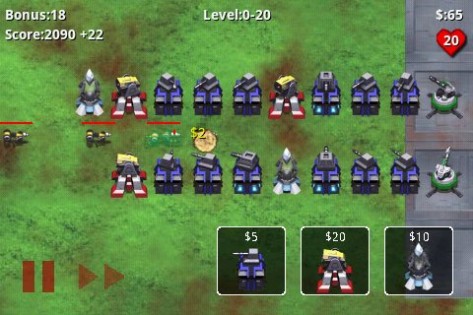 На планшете, где все управление происходит с сенсорного экрана, удобно играть лишь в отдельные жанры игр. Секрет популярности таких игр очень прост – они элементарны в освоении, каждый этап длится относительно мало времени, так что можно смело осилить очередной уровень, имея в запасе лишь минут 15-20, а кроме того – надо в какой-то степени планировать свои действия. То есть имеет место в той или иной степени выверенное сочетание между сложностью прохождения и легкостью управлении. Общая концепция подобного игрового направления очень проста – в вашем распоряжении имеются некоторая местность и ряд оборонительных сооружений (ракетные установки, пулеметы, артиллерия и так далее). Через равные промежутки времени по вышеуказанной местности проходят отряды врага, которые надо уничтожить, грамотно расставляя доступные средства. За уничтожение противника вы получаете награду, которую можно тратить на апгрейд текущих вооружений и покупку новых.