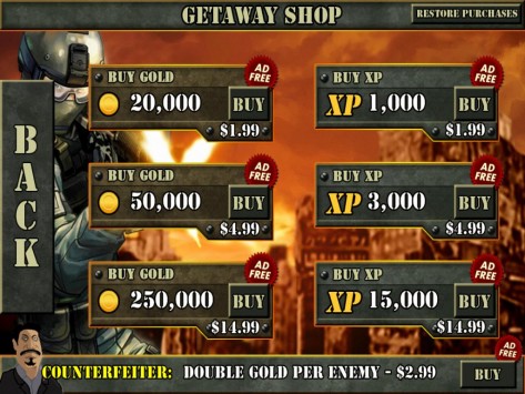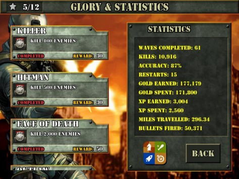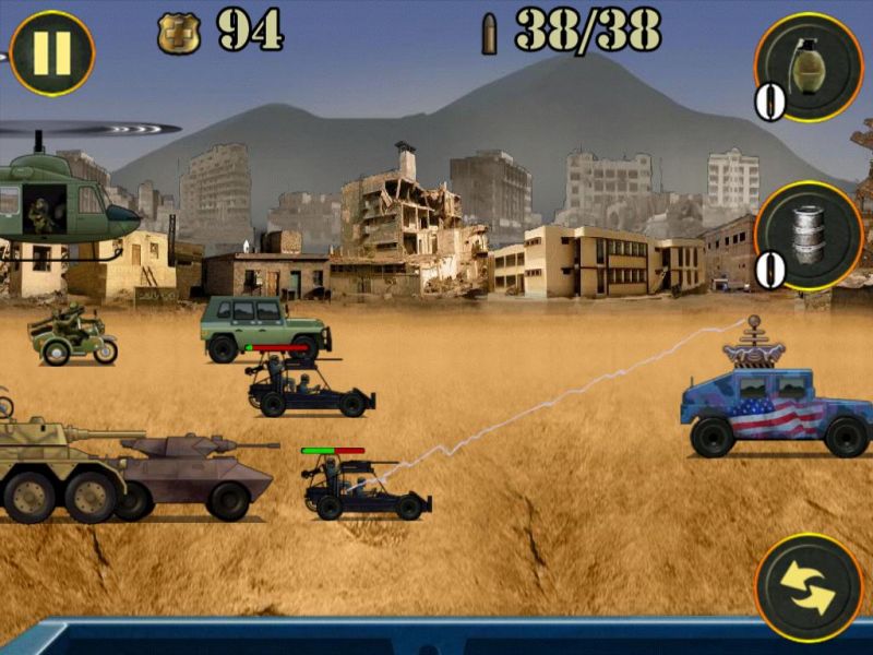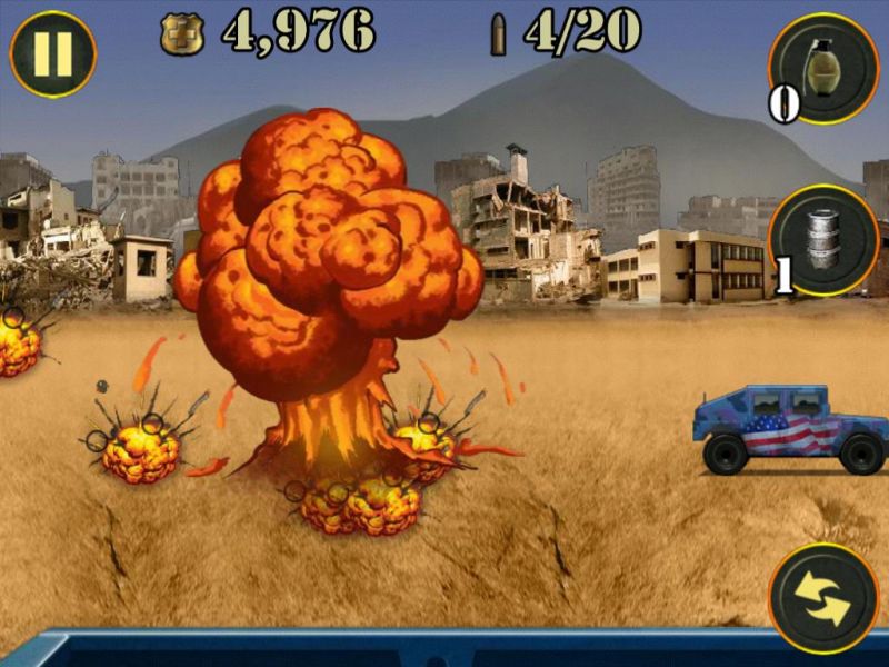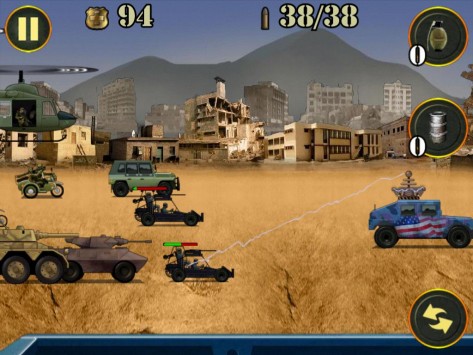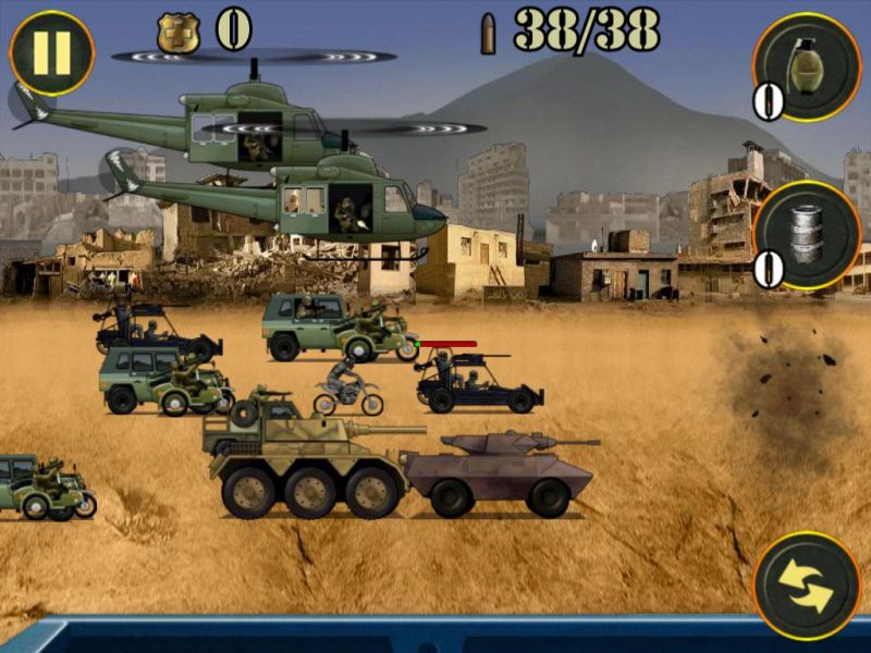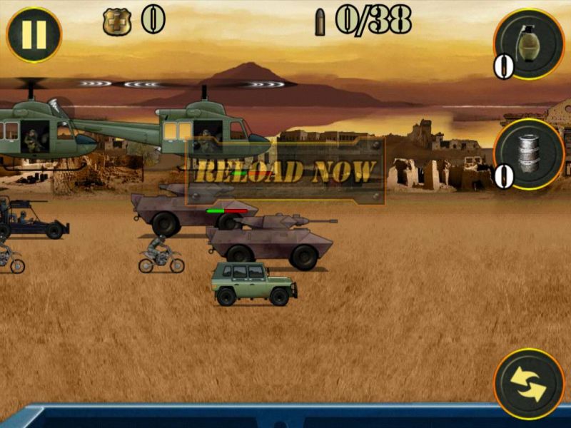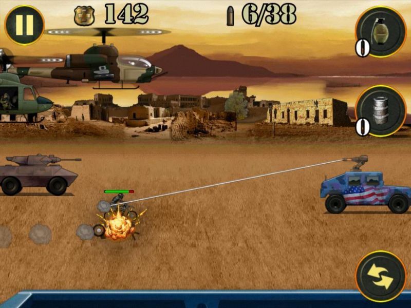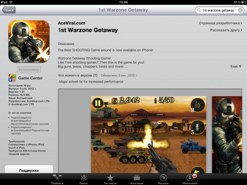 Играем на iPad: 1 st Warzone GetawayОтличная, на мой взгляд, «стрелялка», если надо «выпустить пар», потренироваться в меткости и просто опробовать, что говорится, свои нервы на крепость. Казалось бы все по-детски просто. Однако, поиграв уже раз, понимаешь, что снова первое впечатление оказалось неправильным: покупка оружия, жизней и мн. др. стрельба по наземным и воздушным мишеням – все это и многое другое в 1 st Warzone Getaway. Дистрибутив игры в App Store чуть менее 20 МБ (19,9 МБ). Распространяется приложение на бесплатной основе, однако вместе с тем, содержит несколько так называемых встроенных покупок. Конечно, к ним можно и не прибегать, уж, по меньшей мере, на первых порах. А вот как быть на уровнях или как это здесь называется «волнах», от 20-25 и выше решать вам лично. О каких конкретно покупках речь читаем дальше. Перейдя в меню, пользователь попадет на три большие разделы: MORE GAMES, START GAME, а также GLORY. Что, собственно говоря, представляет собой первый из разделов, понять, уверен, не составит труда – это некоего рода ссылка на другие игры конструктора 1 st Warzone Getaway. Далее идет подпункт, который, собственно, переводит пользователя в игру, и третье подменю – своего рода статистика. Целесообразность его здесь, как по мне, минимальна. Кроме того, наверное, стоило бы отметить также два небольших ярлыка над первым из подменю – с их помощью игрок может отключить музыку и все сопровождающие действия в игре сигналы. Итак, нажав на второе подменю, пользователь попадет в подраздел, где ему будет предложено на выбор три игры. Здесь, откровенно говоря, немного непонятен мотив конструктора. Все дело в том, что все три игры обладают одинаковым мотивом, а потому возникает вопрос в целесообразности их наличия здесь. Изначально я в деталях изучил меню всех трех игр, поиграл несколько «волн» - совершенно никаких отличий в системе нет. Что же относительно самой игры. Уровень сложности возрастает, на мой взгляд, не строго пропорционально, а где-то через каждые 2-3 «волны». Изначально, увидеть, что следующий уровень стал сложнее не получиться – все они кажутся одинаковыми. Впрочем, эта особенность, как увидит читатель в процессе игры, реализована не только на начальных «волнах», но и во втором, третьем десятке и так дальше. Изначально игрок получает 5000 очков жизни, которые, впрочем, можно «разбазарить» уже на первой «волне», но это если вы гениально ленивы, а можно добраться и до 5-6 волны. Сразу же отмечу, покупать «жизненные» очки можно за заработанные на каждой «волне» деньги. Правда каждые несколько «волн» цена новых «очков» растет, но иначе никак. Пройти первую волну, впрочем, как и десять других особого труда не составит. На первом этапе система «подскажет» игроку, как именно ему перезаряжаться, а также, о том, что он может использовать ручные гранаты. Изначально, исключительно для пробы игрок получит бесплатную гранату. В других «волнах» эту гранату ему придется покупать за свои «боевые»! Цена вопроса только 100 монет. Казалось бы, что может быть проще – накупить гранат и взорвать «весь мир»! Но не тут то было. Система реализована таким образом, что на одну игру продаст вам только одну гранату, иногда две. Причем, совершенно непонятно то, каким образом распределяется продажа – нет какой-то иерархии. Другими словами, перейдя на десятую «волну», вы можете купить 2 гранаты, а вот 30 «волна» и тол