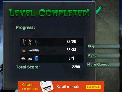 Играем на iPad: Zombie City EscapeДостаточно простая, но вместе с тем «затягивающая» игрушка, в которой основной мотив доехать до финиша, убить больше зомби, но при этом не перевернуться самому. Легкое освоение, ноль встроенных покупок или лишних телодвижений, но при этом победить отнюдь не так просто, как могло бы показаться вначале. Дистрибутив игры в App Store немного меньше шести мегабайт (5,8 МБ). Таким образом, даже при наличии слабенького Wi-Fi или 3G загрузка с автоматической установкой займут до минуты времени – проверено на практике. Перейдя в игру, пользователь не сможет не заметить двух вещей – наличие рекламы, а также то, что графика игры находится на посредственном уровне - заметна рябь и небольшое зерно. Впрочем, для бесплатной игры, которая, кроме всего прочего не обладает встроенными покупками, такое положение дел, пожалуй, допустимо. Меню игры состоит из пяти своеобразных подменю, а также специальной сенсорной кнопки, нажав на которую, пользователь может выключить сопровождающую все игровые баталии музыку. Что же относительно самого меню, как уже отмечалось выше – это пять подпунктов: Continue, New Game, How To Play, а также High Scores и More Games. Уверен, понять какое подменю, за какие функциональные особенности отвечает несложно уже из названий. Суть игры объяснялась в самом начале – нужно проехать максимум улиц, которые здесь изображены в виде гор, каньонов и так дальше, задавать побольше чудовищ, но при этом не перевернуться самому. Последнее, впрочем, все равно не получится. Почему – ответ прост – из-за тех мест, по которым игроку придется «путешествовать и убивать». Все это отлично видно на иллюстрациях ниже. Маневрировать стоит учиться уже с первых минут. В игре для этого есть специальные клавиши, грамотное нажатие на которые, позволит вашей машинке удержать равновесие и не зарыться носом или же багажником. Если равновесие не удержано ваша «тачка» разбита. Видимо, именно потому в игре обустроены специальные, скажем так секции, прибыв к которым, система подскажет, что в последний раз запомнила вас именно здесь, и дальше, если вы, все же разобьетесь, начинать будет именно с этой точки. Что не очень удобно, во время игры, нет возможности нажать на паузу, и остановится, а затем выйти в главное меню. Притормозить и «оставить» машинку «на трассе» можно, однако выйти из игры можно, лишь нажав на аппаратную кнопку на своем iPad, то есть, без перехода в главное меню. Попасть же в главное меню можно, лишь пройдя уровень. В остальном же игрушка мне понравилась. Особенно захватывает, когда твой автомобиль набирает максимальную скорость – в это время ты едва справляешься с тем, что бы он не перевернулся. Но вот когда это случается… Словом, одних это учит, и дальше они едут медленнее, но скажу сразу, гораздо интереснее именно пикировать – чем больше скорость и преград на дороге, тем больше хочется играть. Попробуйте – уверен, понравится как ребенку, так и взрослому. Загразка: http://itunes.apple.com/au/app/zombie-city-escape/id557832798 Джерело: SmartPhone.ua Обговорення новиниКоментариев пока никто не оставил. Станьте первым! Попередні новини