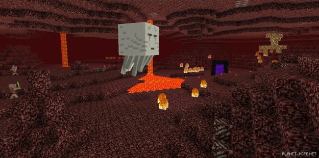 - Нижний мир: он, хоть и появился недавно, но уже начал разрастаться , причем масштабно. В дополнение к свинозомби в подземелье самостоятельно появятся Гасты. А значит, нужно будет уклоняться от огненных шаров. Атаки при встрече не избежать в любом случае.