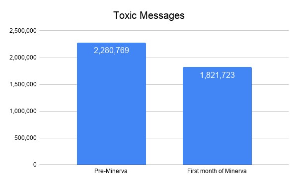 Разработчики зафиксировали положительное влияние Minerva на общение между игроками: после шести недель работы количество токсичных сообщений снизилось на 20 % (с 2,2 до 1,82 миллиона штук). Что касается пользователей, то число игроков, которые позволяют себе писать оскорбительные сообщения, сократилось примерно на 8 %.