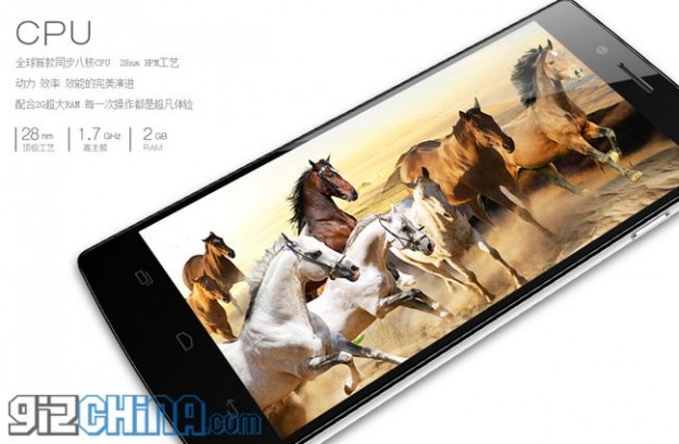Аппарат получит от производителя 5-дюймовым OGS дисплей с разрешением 1920х1080 точек, плотность пикселей на дюйм 443ppi, 8-ядерный процессор MediaTek MT6592 с тактовой частотой 1.7 ГГц, 2 ГБ оперативной памяти и 16 ГБ внутренней, которую можно расширить с помощью карт памяти формата microSD максимальным объемом до 32 ГБ. Кроме этого, в наличии новинки съемная батарея емкостью 2000 мАч, 5Мп фронтальная камера и 13Мп основная, дополненная автофокусировкой и LED-вспышкой, беспроводные модули GPS, Bluetooth 4.0 и Wi-Fi с поддержкой технологии Wi-Fi Direct.