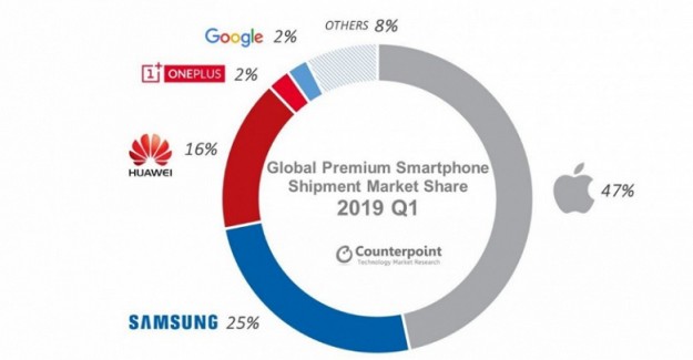 В итоге на данный момент Apple занимает 47% премиального сегмента смартфонов. На втором месте Samsung с долей в 25%. Также в списке лидеров Huawei (16%), OnePlus (2%) и Google (2%).