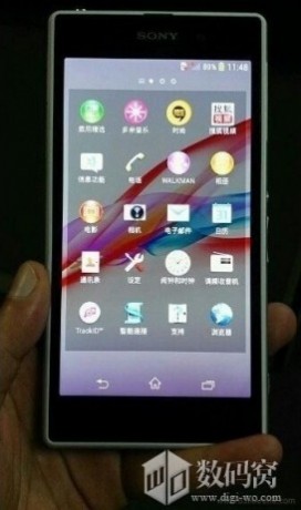 Впервые на фото засветился Sony Xperia Z1 в белом, боковые грани которого опоясывает серебристая рамка.